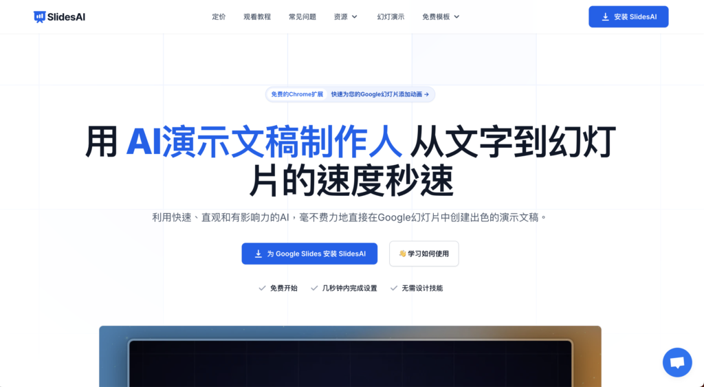 | SlidesAI.io | 學生、會議記錄 | 為 Google Slides 設計的 AI 工具 | ✅ | Google 簡報 |