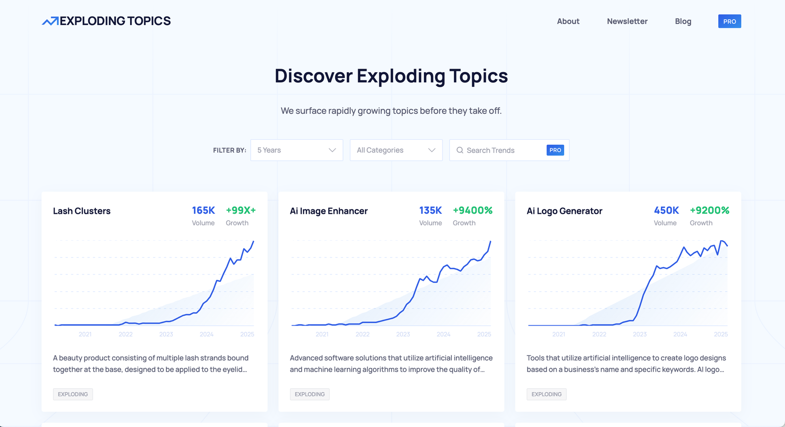 | 趨勢蒐集 | Exploding Topics, Google Trends | 每週追蹤關鍵字、選出潛力主題 |