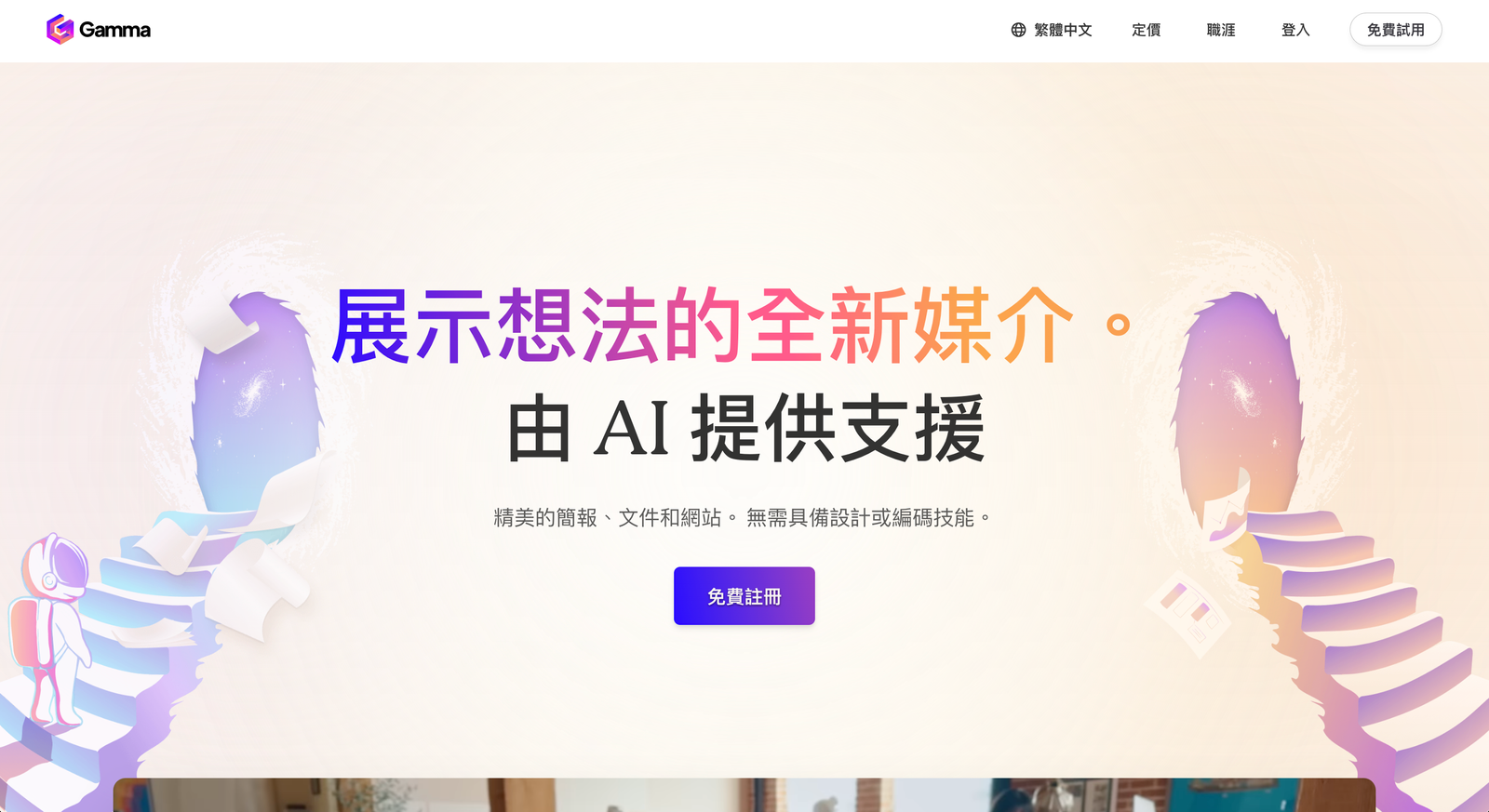 Gamma 結合簡報結構、筆記寫作與知識卡片,輸入想法就能自動生成完整邏輯清晰、可互動的視覺內容。