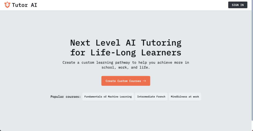 TutorAI 是一個「即時生成微課」的學習平台,輸入任何主題,AI 就能幫你建立課程結構、簡介、測驗與練習題。