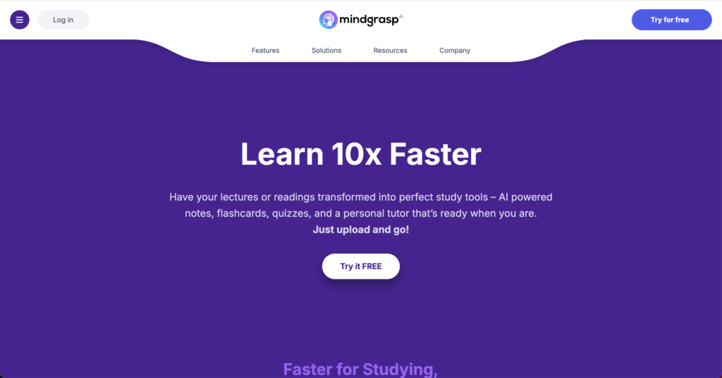 Mindgrasp AI 是一個「學習摘要 + 問答練習」型 AI 工具,支援上傳課本、PDF、講義、影音等內容,自動生成重點與複習問答。