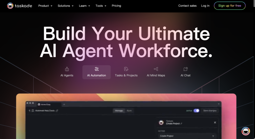 Taskade 結合任務看板、筆記、AI 協助與簡單流程建構工具,是一站式輕量自動化平台。適合個人創作者、小型團隊做流程規劃與重複任務指派。