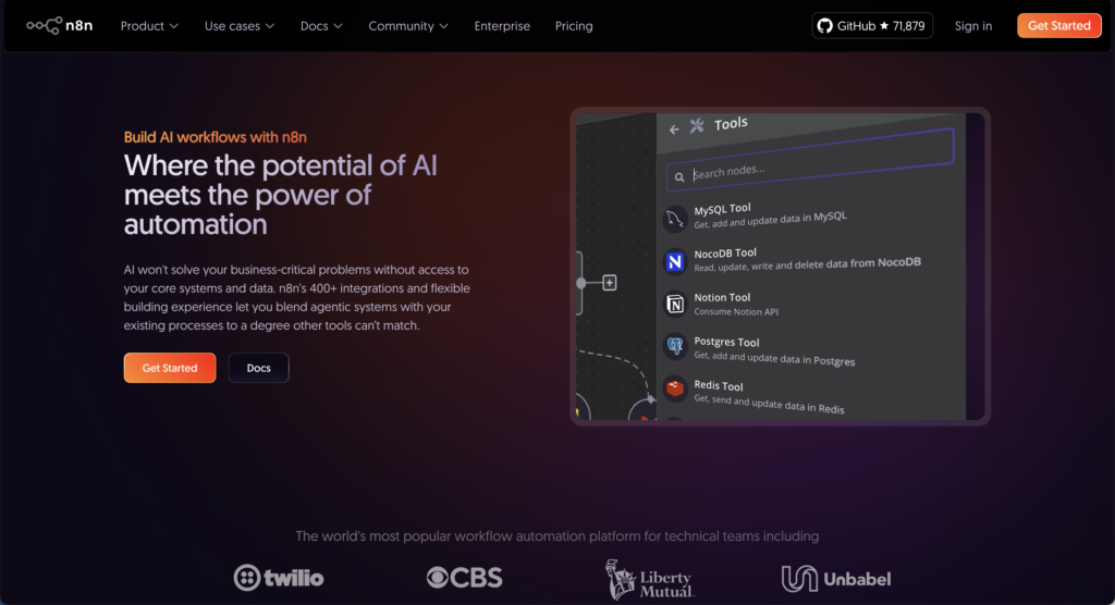 n8n 是一套自由且可客製化的開源自動化平台。透過整合 OpenAI,你可以建構具有推理與執行力的 AI Agent,自動判讀資料並觸發行動,適合技術導向或希望內部部署的團隊。