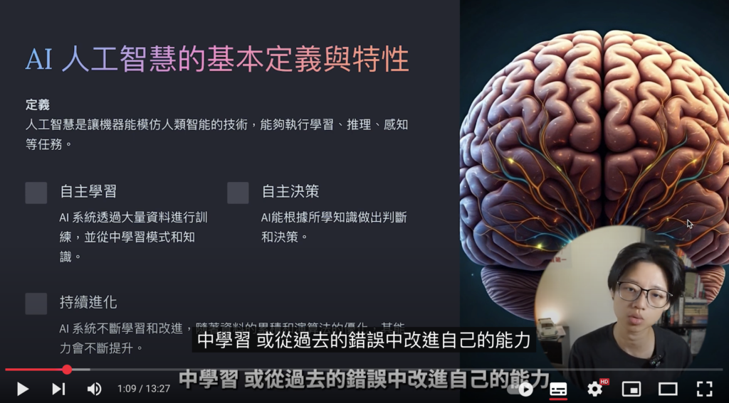 - YouTube 頻道:Simplilearn、Coursera AI for Everyone(Andrew Ng)、Doris A-Liao