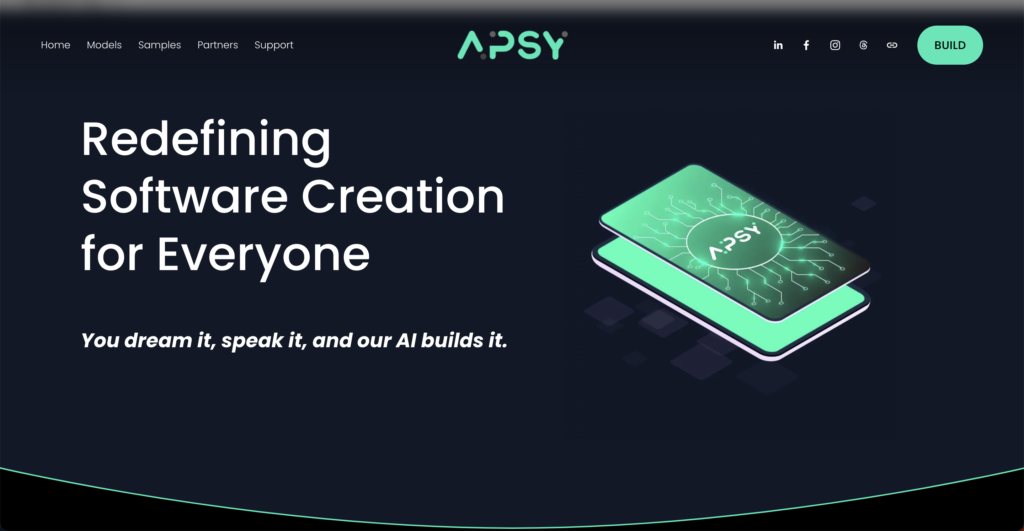 Apsy 提供直覺式界面建立應用程式,支援整合 AI Agent 作為核心模組,可讓 App 執行智能任務或提供 AI 導引服務。