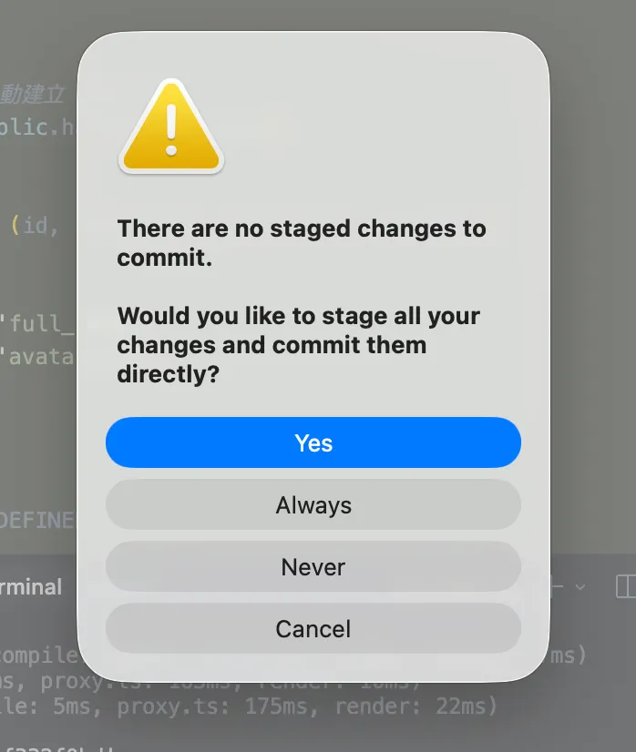 通常你要一起 commit,就按 Yes 把它納入。