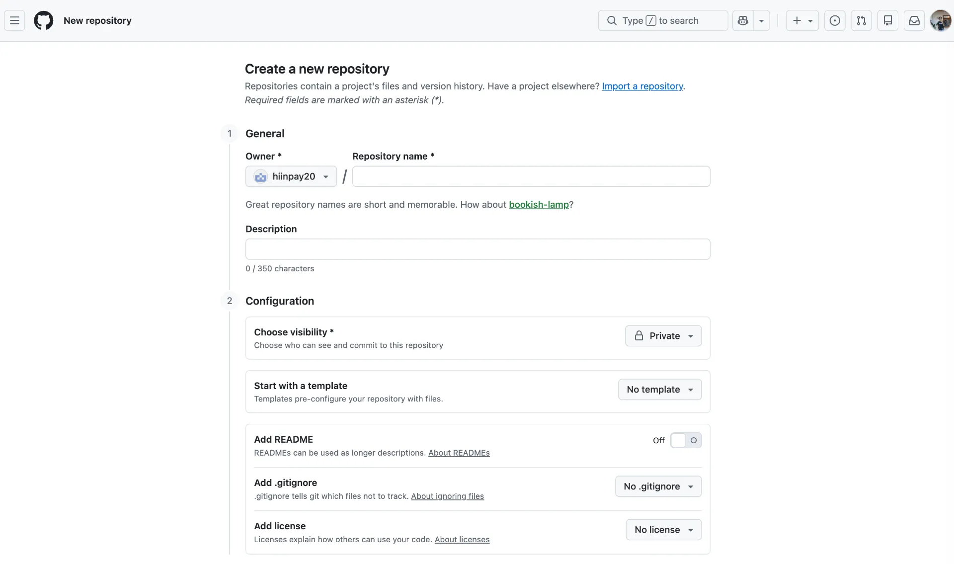 可以選 Private,完成新增後會有自己的專案網址。